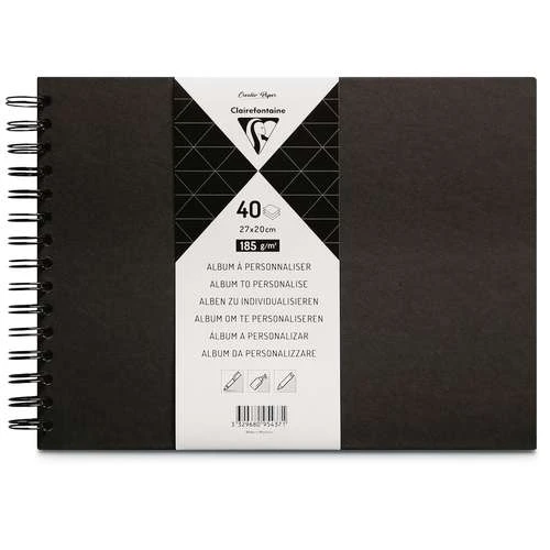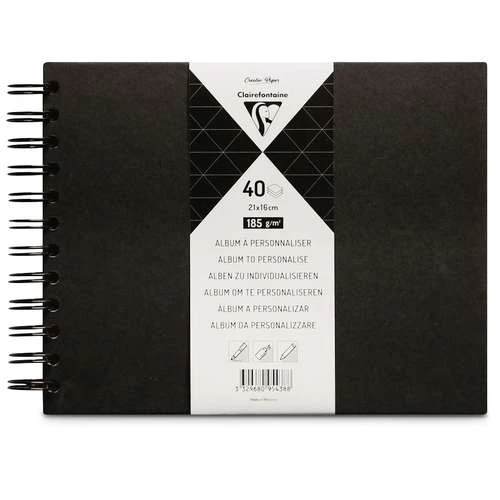 Clairefontaine Black Albums to Personalise have a rigid black cover with a black spiral, which allows the albums to open flat for ease of use. They are available in different sizes.