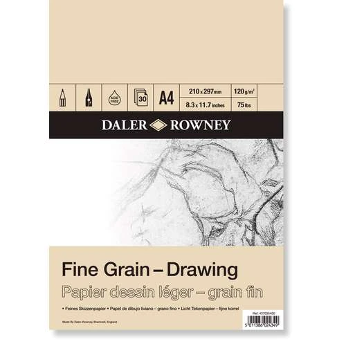 Daler-Rowney Fine Grain Drawing Pads are suitable for work in pencil, charcoal and ink. They contain 30 sheets of natural white, acid-free, 120gsm, fine grain paper.