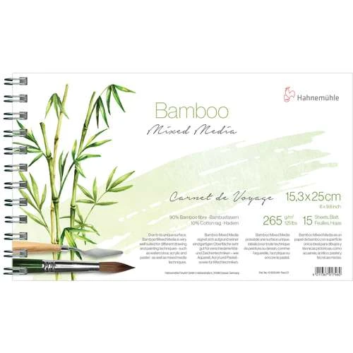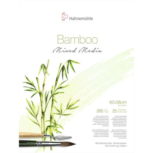 Hahnemühle Bamboo Paper is a natural white mixed media paper made from 90% bamboo fibre and 10% rag. It is suitable for watercolour, acrylic and pastel painting as well as for sketching and mixed media techniques.