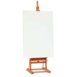 This foldable easel is ideal for canvases up to 102cm. It has adjustable tilt and height and the construction includes rounded wooden corners and brass bolts and screws. The Mabef M26 Artists Field Easel weighs 3.3kg. It is 70cm wide and 85 -200 cm high. (folded 35 W x 85 H x 12cm D). The bottom support is adjustable in 10 positions.