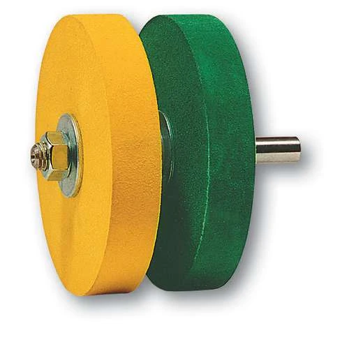Set of 2 sharpening discs, with different functions, and mounted on a bar 12mm in diameter, for use with drills.